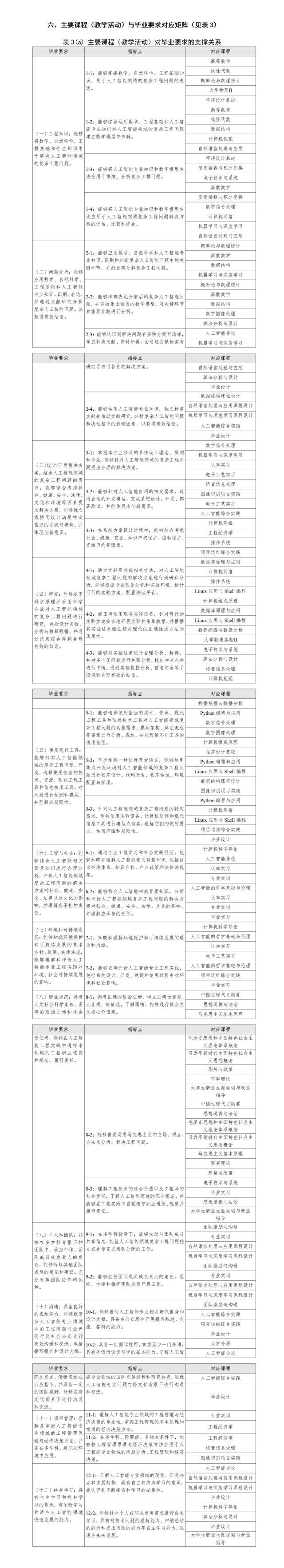 1.工程知识:能够将数学、自然科学、工程基础和专业知识用于解决人工智能领域的复杂工程问题。