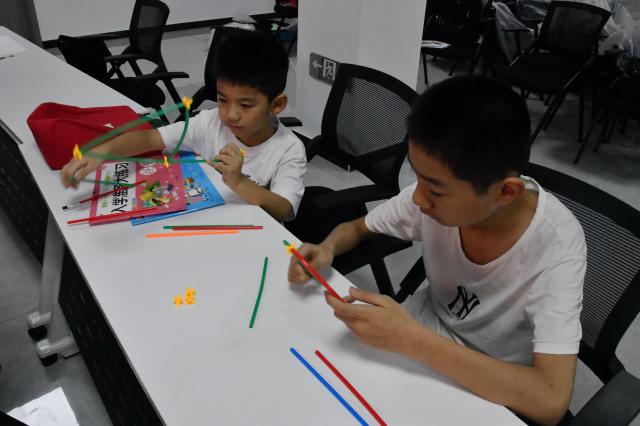 为进一步提高小朋友们的动手实践能力和创新思维水平,志愿者组织开展“小吸管大世界”小游戏,将活动氛围推向了高潮。在这个充满乐趣与挑战的环节中,小朋友们开动脑筋、表演创意,利用志愿者分发的小吸管、纽扣等简易材料,巧妙地构建出形态各异的结构与物体。有的小朋友匠心独运,搭建起简易书架,展现出惊人的空间想象能力;有的小朋友钟情于自然之美,创造出桥梁、树木等的简易景观;有的小朋友结合爱好、发挥想象,拼接出安全帽、椅子的简易框架。这些小游戏淋漓尽致地展现了小朋友们的想象力和创造力,更在动手实践的过程中,悄然提升了小朋友们的手眼协调能力和团队协作精神,让他们认识到了吸管的再利用性和多功能性,增强了环保意识。