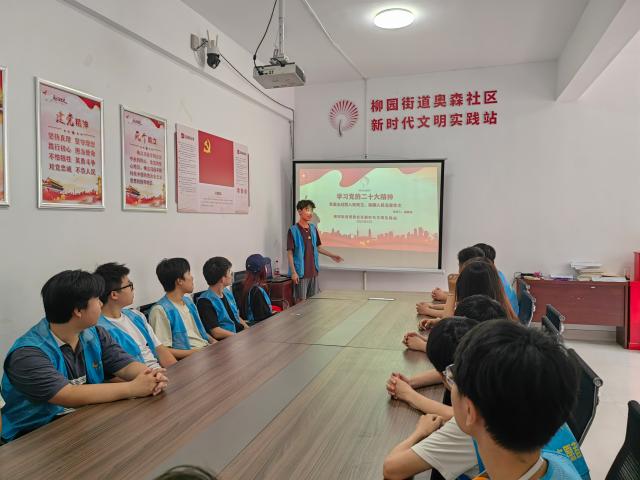 对于新时代的大学生来说,深入学习宣传贯彻党的二十大精神,积极培育和践行社会主义核心价值观,具有重要的时代意义和实践价值。为此,2023级9班团支部与2023级10班团支部通过联系奥森社区于2024年8月13日组织大学生走进社区、开展实践活动,提升大学生的思想政治觉悟和实践能力。