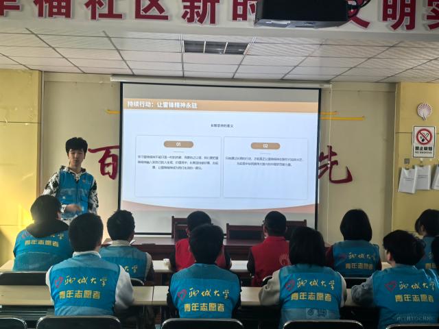 活动前期,团队成员们与社区负责人进行了多次沟通,详细了解了社区居民对雷锋精神的认知程度和在日常生活中践行雷锋精神的实际情况。社区负责人表示,雷锋精神在当代社会仍然具有重要的现实意义,希望通过此次活动,能够让更多居民深入理解并践行雷锋精神。活动当天,团队成员们首先通过精心制作的PPT,向社区居民详细介绍了雷锋的生平事迹、雷锋精神的核心内涵以及在新时代如何传承和发扬雷锋精神。从雷锋突出的工作成绩讲到他“把有限的生命投入到无限的为人民服务中去”的价值追求,团队成员们利用图文结合的方式将雷锋故事生动再现并结合具体案例讲述当今时代雷锋精神的实践故事,使在场居民更加深刻认识到雷锋精神对社会和谐发展的助力。随后,在交流互动环节,居民们积极参与,踊跃发言,分享自己对雷锋精神的理解和感悟,纷纷表示通过此次活动,对雷锋精神有了更深刻的认识,并愿意在日常生活中践行雷锋精神,帮助他人,服务社会。