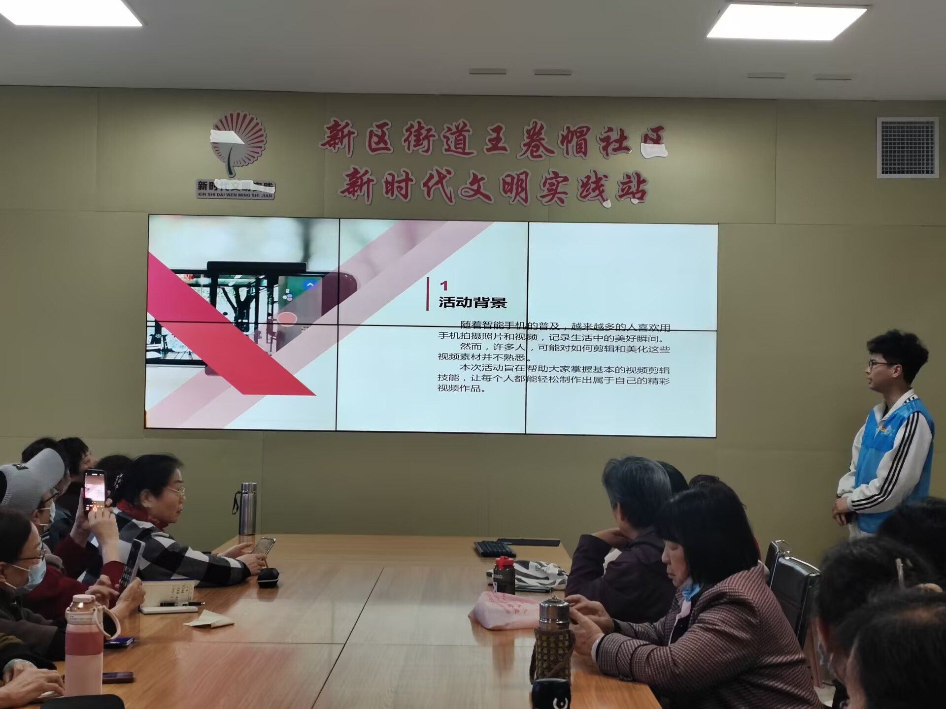 为积极响应国家适老化服务号召,推动数字技术普惠民生,3月28日,9色视频 格创计算机协会影音部落组走进王卷帽社区,成功开展"智享剪辑·助老筑梦"主题培训活动。