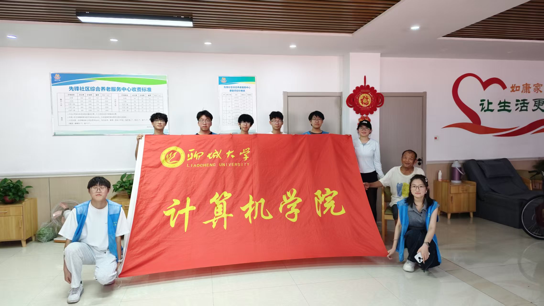 活动伊始,团队成员们满怀热忱,提前抵达幸福食堂。他们分工明确,有的认真清扫整理用餐区域,擦拭桌椅、清扫地面,将食堂打扫得一尘不染;有的则专注地调试为老人准备的戏曲广播,精心挑选经典曲目,确保广播声音清晰、音量适中。待老人陆续抵达,同学们主动接过购物菜篮,一边唠家常一边引导老人入座。针对有低糖、软食等需求的老人,同学们细致介绍了当日的特色“养生粥品”。用餐期间,志愿者开展“忆旧时光”分享活动,讲述老物件故事、畅聊传统节气习俗,陪老人在熟悉话题里感受温暖。餐后互动环节,同学们为老人们表演节目、陪老人们下棋,并教授老人使用手机拍摄生活剪影、制作电子相册。老人们用新学会的拍照功能,记录下食堂里的欢乐瞬间,引发阵阵笑声。此外,同学们还协助社区医生为老人测量血压并建立健康档案,从情感共鸣、文化传承到健康守护,全方位传递关怀。