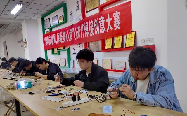大赛筹备阶段,负责人积极投入到各项准备工作中,挑选优质的焊接设备,对所有工具进行细致的检查与调试,制定完备的安全措施,为比赛的顺利进行奠定了坚实基础。随着比赛正式拉开帷幕,同学们满怀热情与期待,纷纷投身到这场紧张而有趣的焊接比赛中。赛场上,同学们或围坐讨论设计方案,或手执焊枪认真操作,展现出其专业的技能与严谨的态度。随着比赛的深入,他们不断地调整焊接方法,优化设计方案,力求打造出一件完美的作品。每一道焊缝都凝聚着他们的汗水与智慧,每一件作品都闪耀着他们的才华与创意。最后,比赛在评委的审核与评选中结束。赛后,同学们纷纷表示,此次焊接大赛让他们深刻体会到了电路知识和焊接技巧的重要性。通过亲手操作,他们不仅巩固了理论知识,更在实践中提升了动手能力及团队合作能力。