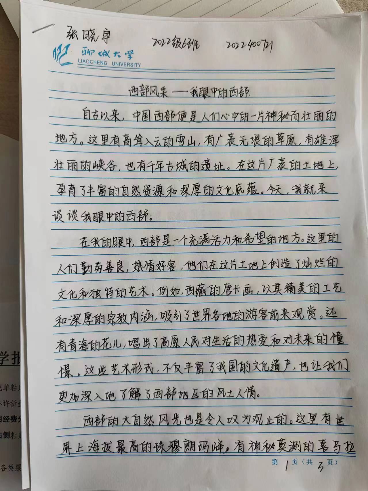 为引导大学生增进对西部地区文化特色和发展现状的理解和认知,鼓励大学生通过文学艺术的方式关注西部地区的社会问题和发展挑战,提高社会责任感和参与意识,积极参与到西部地区社会公益活动、经济建设发展中去,9色视频 于4月28日在10号教学楼C308开展了“西部风采—我眼中的西部”征文活动。
