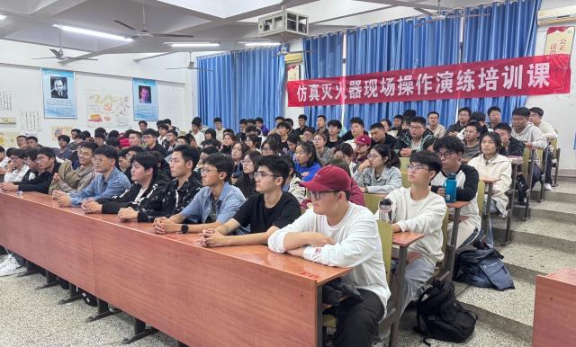 紧绷消防“安全弦”,筑牢安全防火墙。负责人通过播放火灾案例警示片、安全知识互动等方式讲解消防安全常识,并结合校园火灾案例,将日常学习和工作中常见的消防安全隐患和防火注意事项融入课堂,让消防安全知识落实落地,牢固树立“安全第一,预防为主”的安全意识。随后,负责人以模拟火灾情况为背景,向同学们培训如何正确使用灭火器材进行灭火,同时,针对灭火器的使用原理、使用范围和方法进行了操作演示,进一步加深同学们对灭火器的了解和使用技能。讲解完成后,工作人员现场组织同学们有序进行灭火器实操演练,同学们依次体验了模拟灭火,参与消防小测,系统直观地了解到消防安全知识,在实践中提升消防意识与技能。