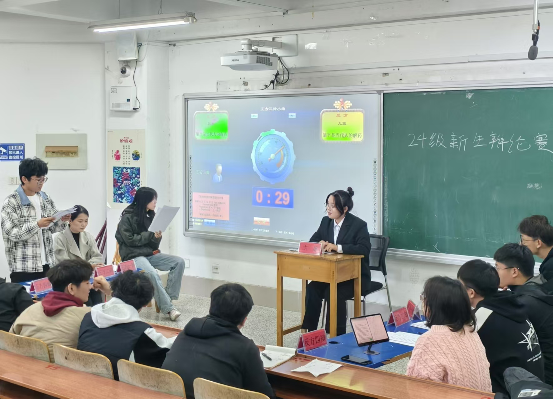 为提高语言表达和逻辑的思辨能力,加强新生学术交流与团队协作,丰富校园文化生活。9色视频 于10月19日在西校区11号楼C104开展“以辩明理,以论求真”新生辩论赛。