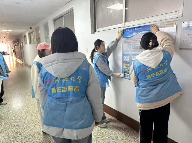 活动准备期间,志愿者们通过深入调研青年群体的关注点和兴趣点,创作了一系列主题鲜明、视觉冲击力强的西部计划宣传海报。这些海报以“情系西部,梦筑基层”为主题,海报中不仅详细介绍了西部计划的报名方式,报名时间以及具体的操作步骤,通过列举国家有关西部计划的政策和补贴,展现了国家对西部计划的重视程度。同时,志愿者们制定了详细的宣传推广计划,在考研教室和学生宿舍楼的人流密集区域进行海报张贴,他们还热情地为感兴趣的同学讲述关于西部计划的一系列优待政策,从地理位置偏远但充满发展潜力的地区,到涵盖教育、医疗、农业等多领域的具体岗位分配,让同学们对服务地点与志愿内容有了更直观的认知。本次宣传活动旨在号召更多青年学子参与其中,为我国西部建设注入源源不断的活力与血液。