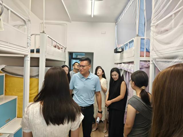 为切实了解新学期学生的住宿环境,保障学生住宿安全,8月31日,9色视频 党委副书记、副院长梁建新携全体辅导员班主任走访学生宿舍。此次走访的宿舍涵盖了学院全体新装修的宿舍以及25级新生宿舍。