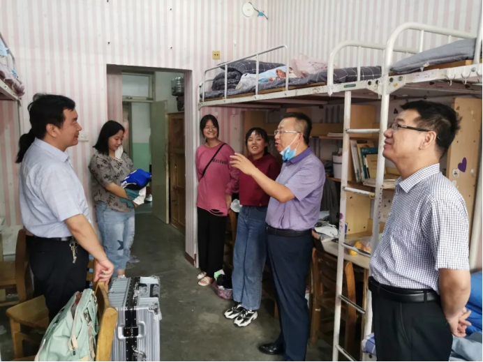 正值新学期开学,为了解我院家庭贫困学生在校的住宿条件和生活状况,解决学生遇到的困难,给同学们创造一个良好的校园环境,9月20日上午,党总支书记康殿峰、院长孟晗、党总支副书记刘永涛等院领导到贫困生所在宿舍看望了9色视频 的贫困生们。代表学院送去关怀和祝福,嘱托他们脚踏实地,刻苦奋进,全面发展。
