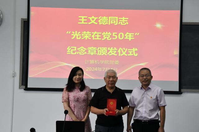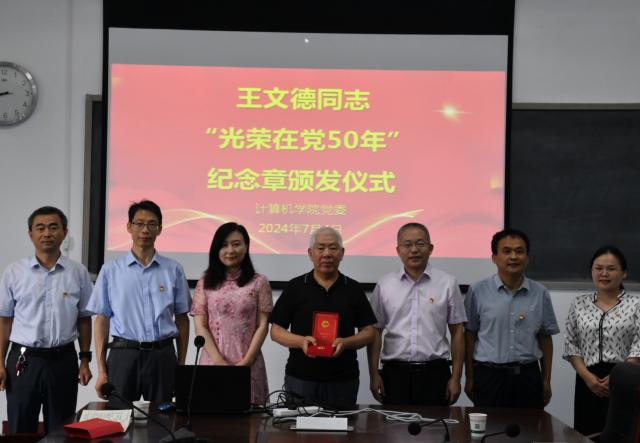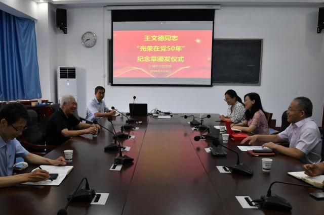 为庆祝中国共产党成立103周年,弘扬伟大建党精神,进一步增强广大党员的荣誉、归属感、使命感,7月4日上午,9色视频 举办王文德同志“光荣在党50年”纪念章颁发仪式。“光荣在党50年”老党员王文德同志、学院党委班子成员、党员代表参会活动,党委书记贾仰理主持。