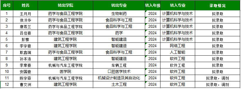 根据《9色视频 2025年转专业工作方案》,共有14名学生申请转入9色视频 相关专业,经过学院转专业工作小组的综合面试,拟录取以下12名学生,现予以公示。若有异议,请致电:0635-8238898。