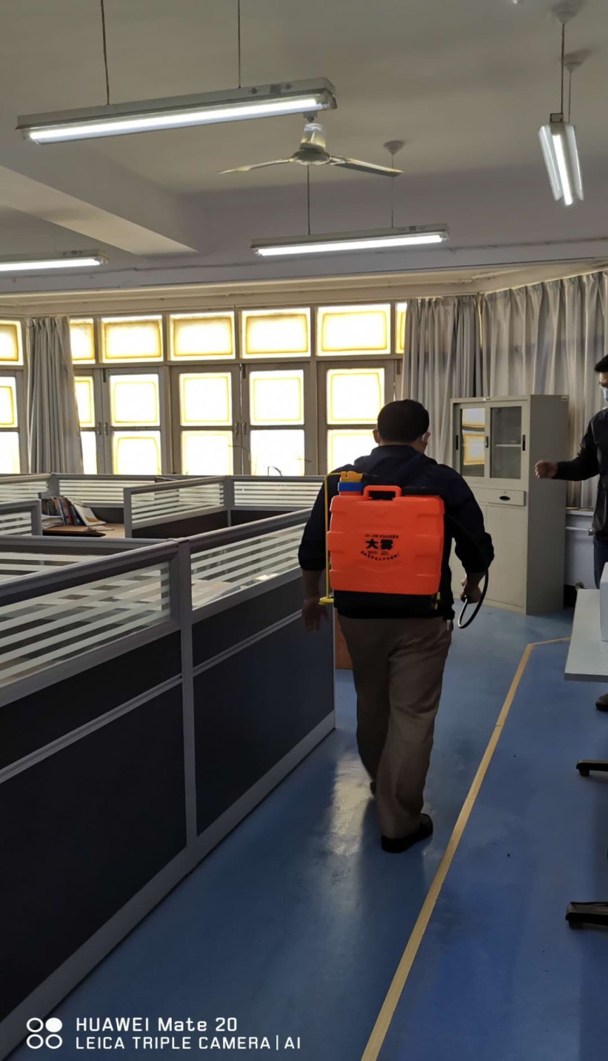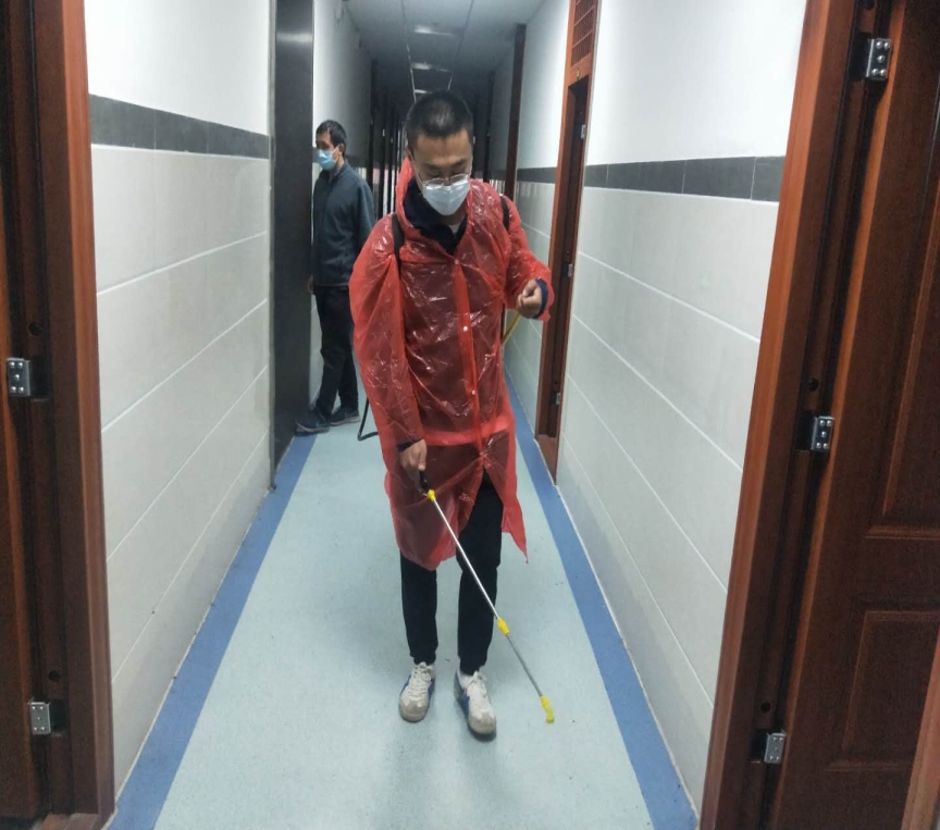 当天下午,学院组织全体班主任及团委辅导员对全院宿舍进行了彻底消杀处理。
