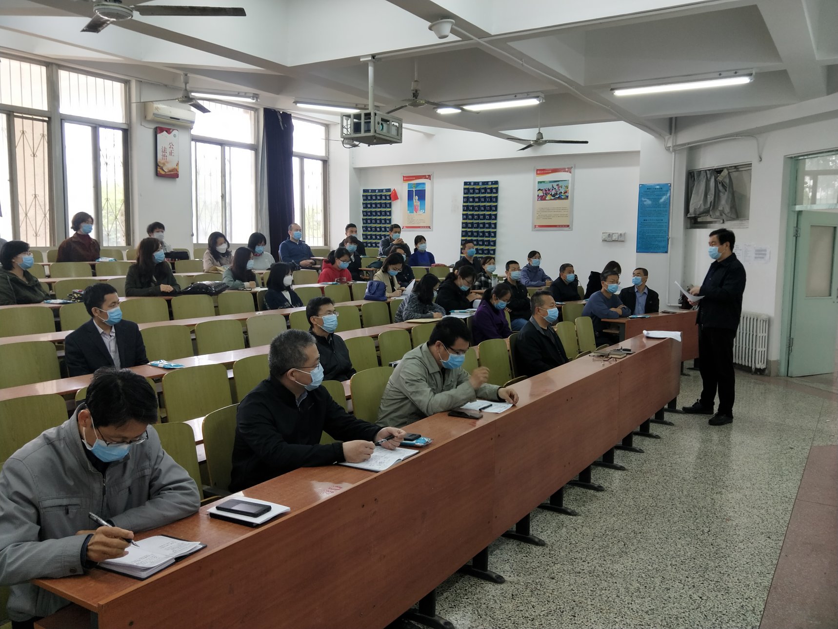 会后,学院全体教职工共同参与了教学区疫情防控演练,演练过程环节完整,进展流畅。全院教职工积极参与其中,对疑似学生的报告、学生安抚、备用教室启用、重点区域消杀等各个环节的处理过程都有了明确的认识,演练取得了良好的效果。