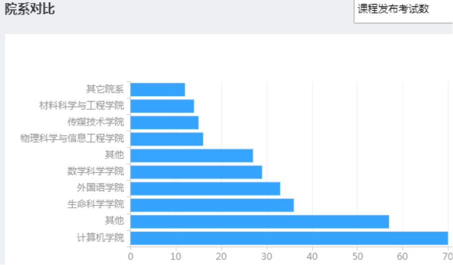 图2 院系课程发布考试数对比 图3 课程发布考试数对比