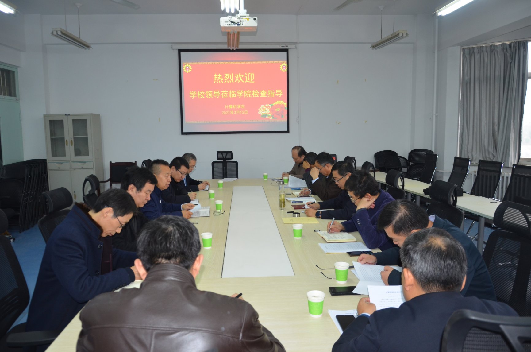 院长孟晗从教学工作、学科建设和科研工作、学生工作、国际合作与国际化办学工作、师资队伍建设、学院工作重点等方面进行了汇报。强调学院始终把教学工作作为中心工作,从加强专业、课程建设入手,围绕课堂教学,深化校企合作、加强实践教学,建立健全本科教学质量保障体系,产出一批高水平教育教学成果;同时,学院加强学科平台、团队建设,全力推进计算机学科ESI指数,提升科研水平;打造学生“三创品牌”,学生学科竞赛数量、层次显著提升。学院其他班子成员分别进行了补充汇报。