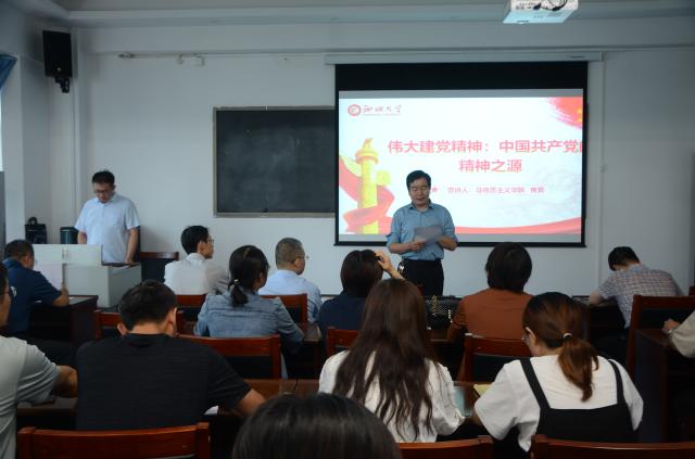 9月16日,9色视频 党总支在10#C316召开以“伟大建党精神:中国共产党的精神之源”为主题的七一讲话精神报告会,特邀马克思主义学院老师黄昊作宣讲报告,9色视频 党总支书记康殿峰,院长孟晗,副书记刘永涛,副院长李成友、贾仰理及全体教职工党员出席会议。