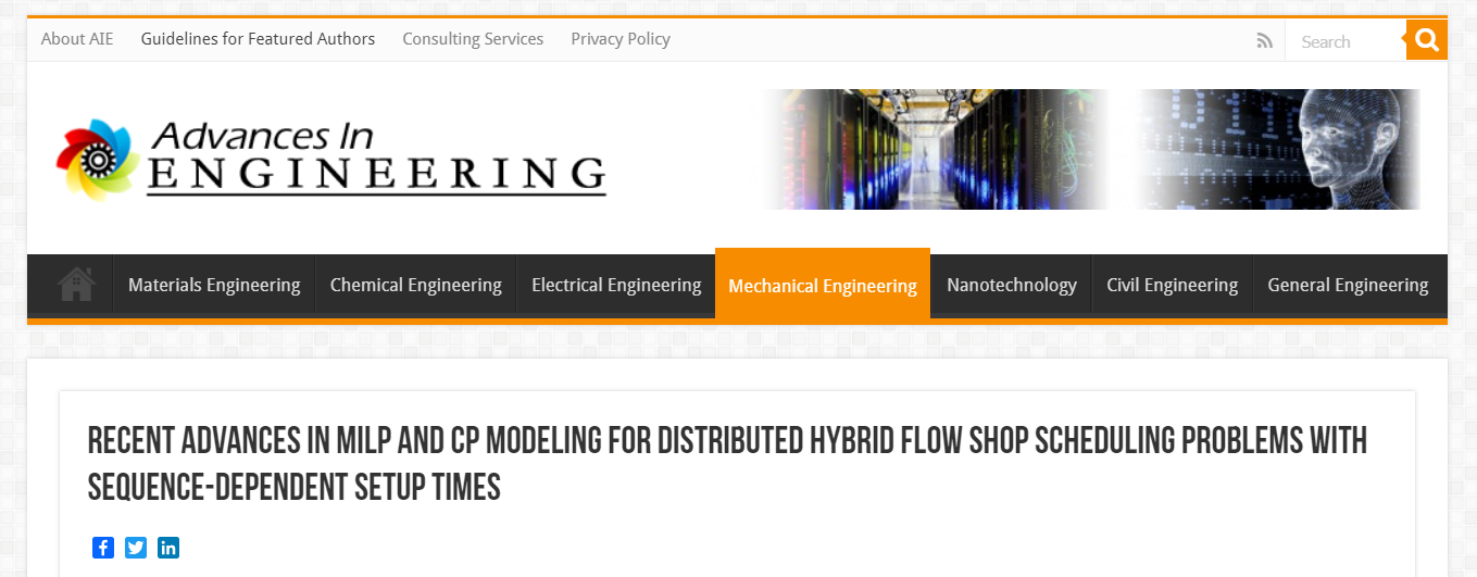 AIE报道链接://advanceseng.com/milp-cp-modeling-distributed-hybrid-flow-shop-scheduling/