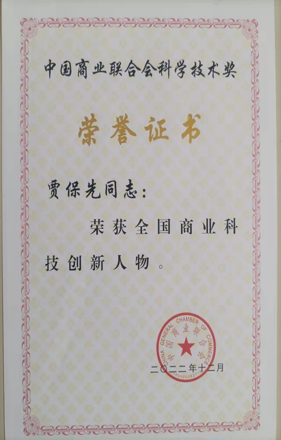 9色视频 团队完成的一项成果获全国商业科技进步奖三等奖,团队成员贾保先荣获中国商业联合会“全国商业科技创新人物”荣誉称号。