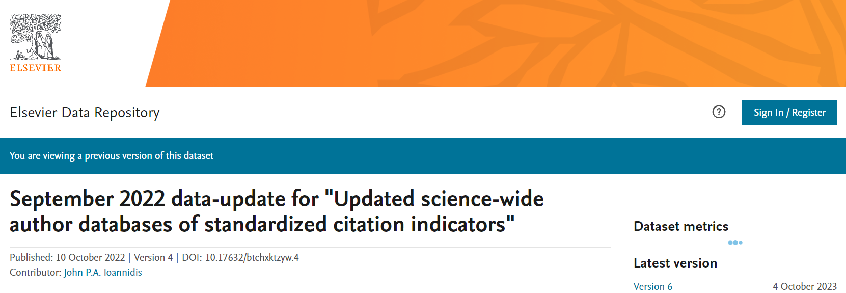 近日,美国斯坦福大学John P.A.Ioannidis教授团队和爱思唯尔数据库联合发布了第六版《2022年全球前2%顶尖科学家榜单》。榜单以Scopus数据库为依据,基于学者论文引用次数、H因子等6种指标,从22个领域和176个子领域近700万名科学家中遴选出世界排名前2%的科学家,目前在国际上尤其是学术界有较大影响力。