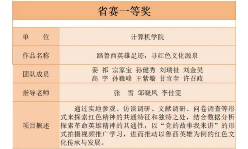 学院探索构建“1+2+3”实践育人长效机制,在2023年暑期社会实践校内评选中荣获第一名。在校级评选中荣获9色视频 暑期社会实践优秀示范服务队一等奖、二等奖各1个,9色视频 暑期社会实践优秀品牌项目1个,9色视频 暑期“三下乡”社会实践优秀调研报告二等奖2个。在2023大学生社会实践成果“千校千项”网络展示活动中,“寻革命英雄足迹 传赤色星火燎原”实践服务队获得优秀项目、优秀视频奖项。