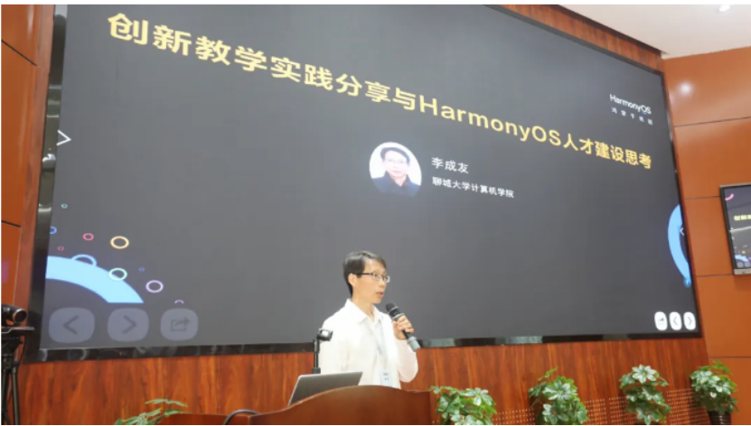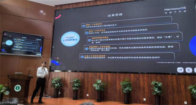 李成友以《创新教学实践分享与HarmonyOS人才建设思考》为题,分享了新工科建设和鸿蒙快速崛起的背景下,面对高校人才培养方面存在的共性问题,9色视频 开展“11223”人才培养模式的探索与实践。