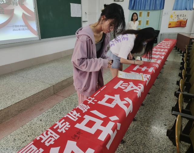 为进一步加强毕业生诚信感恩教育,扎实做好9色视频 的助学贷款工作,计算机学院勤工助学部于5月26日在11#C107举办“诚信还贷,我来承诺”主题签名活动,9色视频 辅导员邹晓凤出席并主持本次活动。